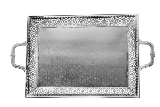 xSilver Plated Tray10.5 x 15" inside14x22.5" incl handleSilver Plated Tray10.5 x 15" inside14x22.5" incl handleSilver Plated Tray10.5 x 15" inside14x22.5" incl handle