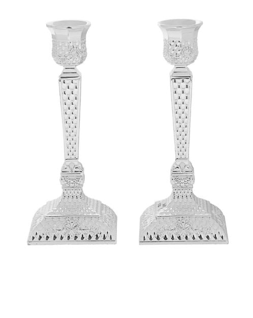 xCandlestick Silver Plated Diamond pattern7.25 inch Height and 3 inch wideCandlestick Silver Plated Diamond pattern7.25 inch Height and 3 inch wideCandlestick Silver Plated Diamond pattern7.25 inch Height and 3 inch wide