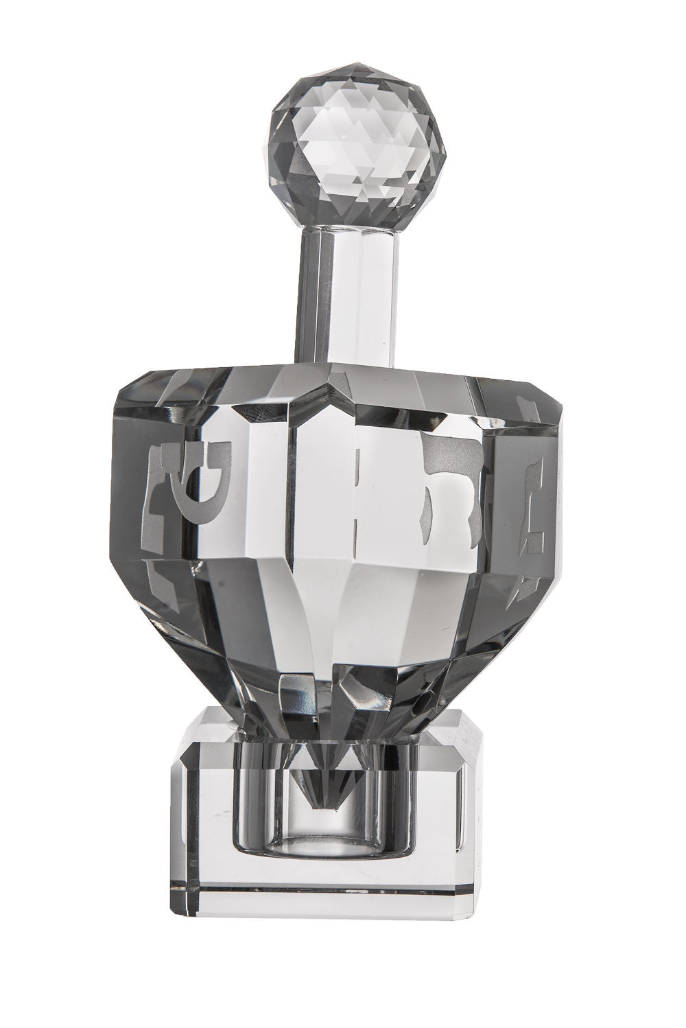 | Large and lovely, this dreidel shapeslike a diamond solitaire. The dreidel is beautifully executed in hand cut, hand polish, clear crystal. Etched Hebrew letters on each side of the dreidel. Can be used as a paperweight. Perfect as a gift. Sold complete with a stand and a gift box. The dreidel is 5.5 inch tall. |