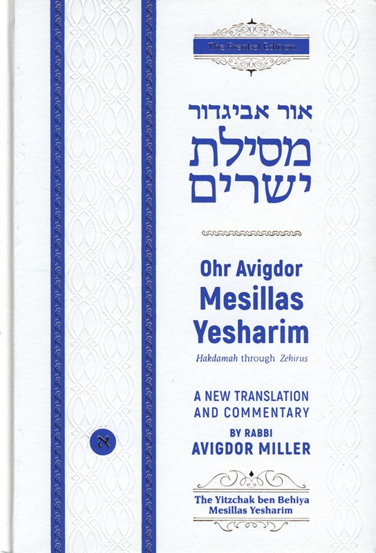 x- You never learned Mesillas Yesharim... until you learned it the clear and vivid Ohr Avigdor way! - Volume 1 - Introduction through Chapter 5/Hakdama - Nekiyus The ladder to holiness just got so much easier to climb. The Ohr Avigdor Mesillas Yesharim is a completely original sefer that will let you discover a Mesillas Yesharim like you never did before. In fact, you never learned mussar until you learned it the clear and vivid Ohr Avigdor way. You'll discover: Rabbi Avigdor Miller's own all new translation Every word of the text is explained It gives background for unfamiliar concepts; understand chazal and history Plentiful examples for all concepts that drive the message home Crystal clear! All posukim and chazalim are explained But that is just the beginning. Ohr Avigdor Mesillas Yesharim will introduce you to the Ramchal's ladder to kedusha (holiness). With Rabbi Miller, you'll go up the that ladder, mind and soul, as each step is illustrated in awesome detail and clarity. Chock full of real world observations and tips that speak to today's reader, it's no longer merely a mussar sefer, but the ultimate how-to guide for life and avodas Hashem. Suddenly you'll realize you've never rejoiced in Hashem like this before!