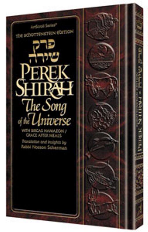 xIn Perek Shirah, all components of Creation - natural phenomena, animals, birds, fish - sing their own praises of their Maker. In this beautiful full - color book, each page features a magnificent photo, accompanied by the text and a lyrical translation of that creation's song, and an incisive, stimulating comment by - a comment that lets us"hear" and absorb the inner meaning of Perek Shirah.