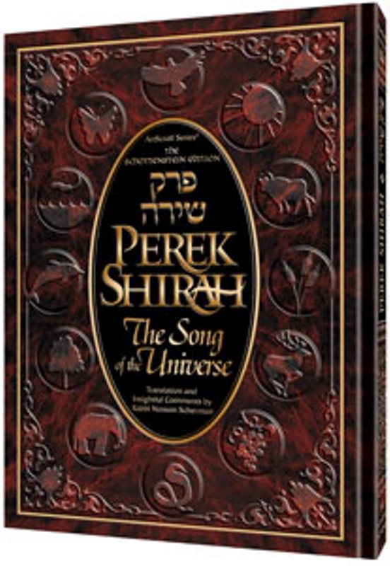 xIn Perek Shirah, all components of Creation - natural phenomena, animals, birds, fish - sing their own praises of their Maker. In this beautiful full - color book, each page features a magnificent photo, accompanied by the text and a lyrical translation of that creation's song, and an incisive, stimulating comment by - a comment that lets us"hear" and absorb the inner meaning of Perek Shirah.