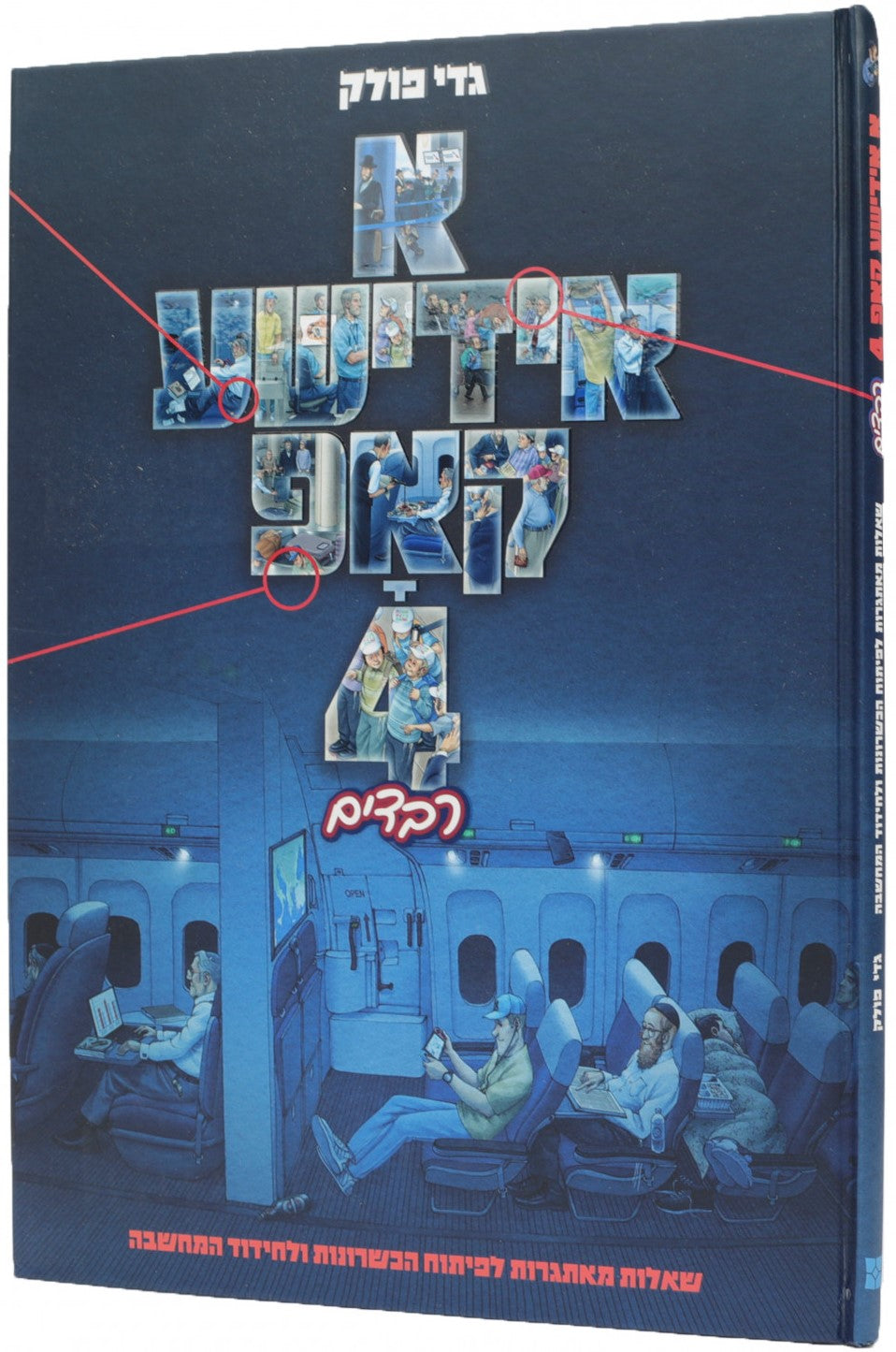 x- דער וועלט בארימטער מעלער און שרייבער - גדי פאלאק - שטעלט פאר דעם פערטן ביכל אין די סעריע'א אידישע קאפ', יעדע בלאט מיט פיר שיכטן. די ליינער וועלן זיך הייבן, ארויפפליען אין די הייעך, פליען אין די הויכע רוימען און לאנדן אין זייער ציהל. דורכאויס די רייזע וועלן די ליינער זיך דערוויסן נייע געדאנקען און אויסשארפן דעם קאפ געפלאכטן מיט א מוסר השכל, א הנאה ברוחניות ובגשמיות. די פראגעס וועלן מאכן טראכטן די וואס באקוקן די בילדער נייע ווי אלטע צוגלייך, און יעדער וועט טרעפן די פונקטן וואס וועלן אים אינטערעסירן און איבערראשן דורכאויס דאס ליינען - פליען.