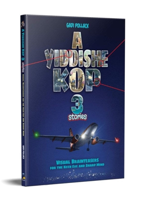 x- Visual Brainteasers for the Keen Eye and Sharp Mind. What do you say about boosting your child's cognitive abilities? Great idea! We knew you'd agree. You can do it right now! Gadi Pollack's newest book of illustrations, A Yiddishe Kop, is nothing less than a thinking revolution. Your child will discover hours of enjoyment - thinking, discovering details, analyzing information, and drawing conclusions. It's intellectual development at its best! A Yiddishe Kop features many full-spread illustrations of real-life scenarios common to Torah-observant communities, each accompanied by brain teasing questions. Finding the clues and answering these questions requires a keen eye, logical reasoning, and broad thinking. Your child will need to develop creative thinking, learn how to think "out of the box, " and to see the world from entirely new points of view. The benefits of this intellectual challenge come hand-in-hand with the inimitable artistic beauty of the Torah world's most sought-after artist - Gadi Pollack.