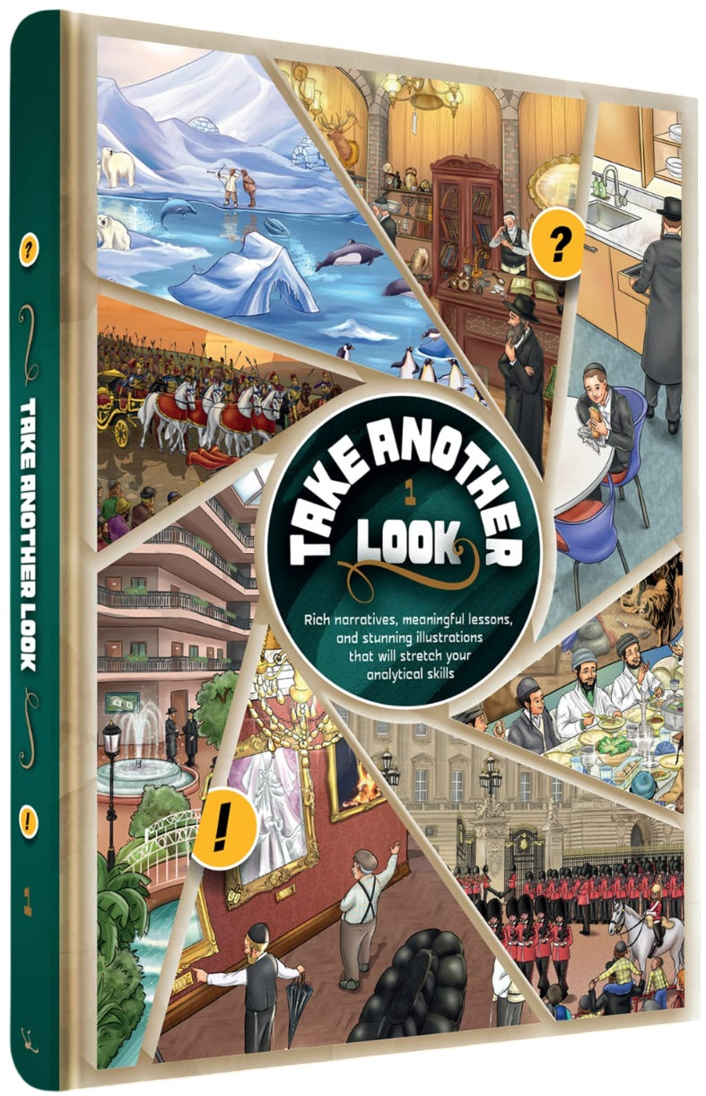 - Each page presents thoughts to ponder, for example: Which children belong to the same family? Who didn't come to view the fish? Which people didn't have to pay for entry? Who has already davened Mincha?