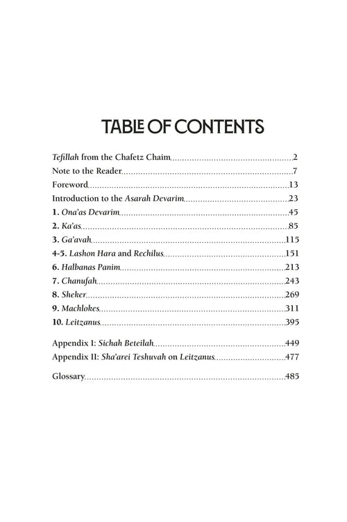 ten categories were coined by the Chafetz Chaim as the "Asarah Devarim," and expounded