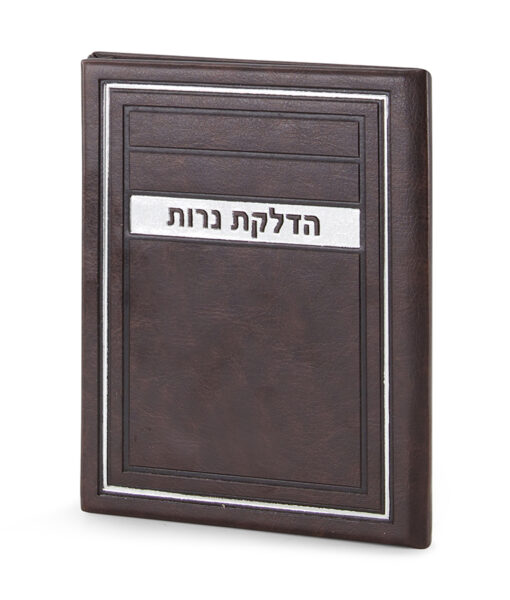Shabbat candle Lighting in a leather-like elegant hard cover bindingAn innovative and luxurious design.With combination of goldsilver stamping (depending on the color of the cover).Contains 2 pages glued on the inside, in full color printing on quality paper with lamination and easy-to-see layout.A special gift and souvenir that will upgrade the Shabbat candle lighting.This model also exists as additional prayersNishamt Kol Chai Havdalah Parshat Haman Mizmor LetodahHafroshas Challah Tefillat Haderech Tefillat Hashlah Birkat HamazonChanukah Candle Lighting