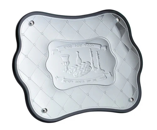 Wooden Challah Board With Silver Plating Protected By Glass - 11.8" x 16.1"