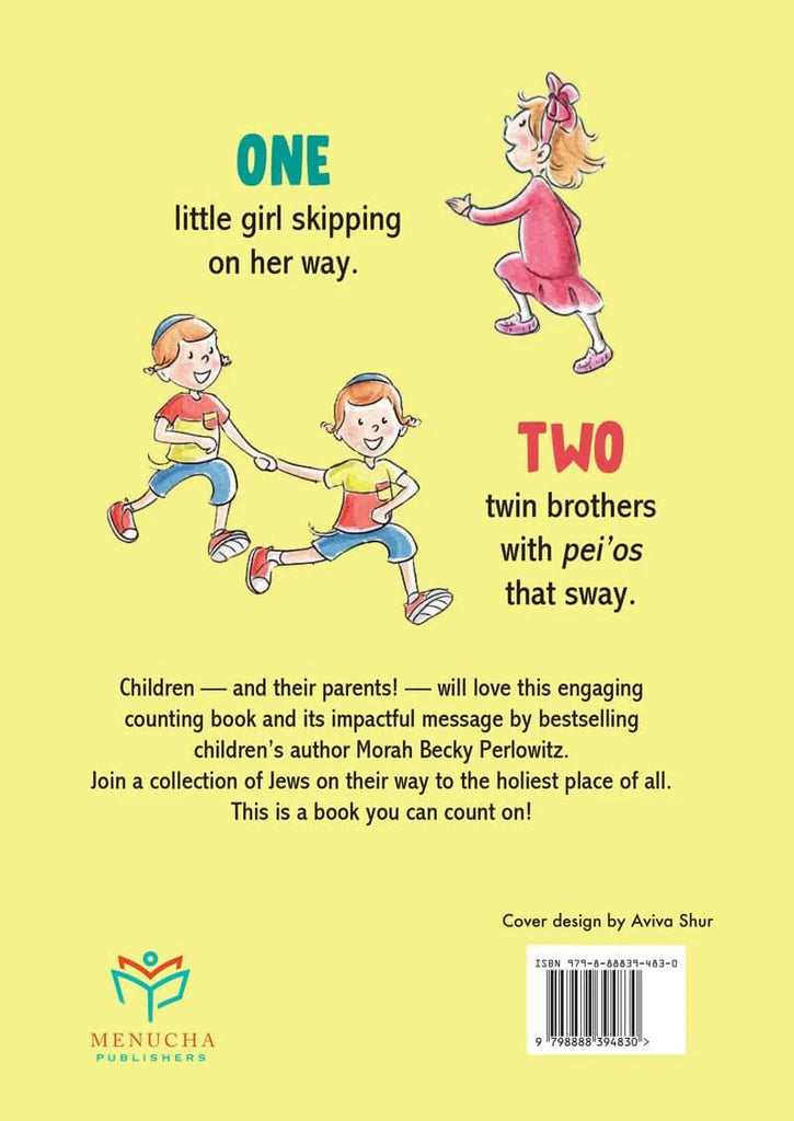 Children — and their parents! — will love this engaging counting book and its impactful message by bestselling children’s author Morah Becky Perlowitz. Join a collection of Jews on their way to the holiest place of all. This is a book you can count on!