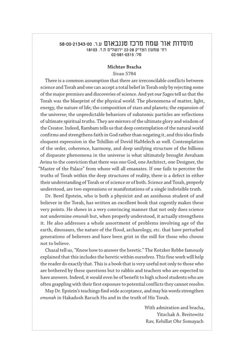 so that their alleged conflict with Torah can be intelligently reassessed."
