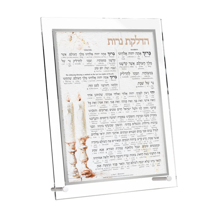 Introducing the Feldart Collection: Lucite Hadlakos Neiros Tabletop Blush Rose - Artscroll Artwork. Elevate your Shabbos experience with this beautiful piece, featuring a modern design and high-quality materials. Crafted for durability and aesthetic appeal, this artwork will be the perfect addition to your home.