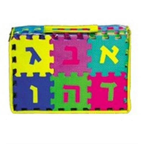 xQuality foam floor mat with removable aleph-bet letter in each of the 36 3" interlocking squares. Multi-colored.