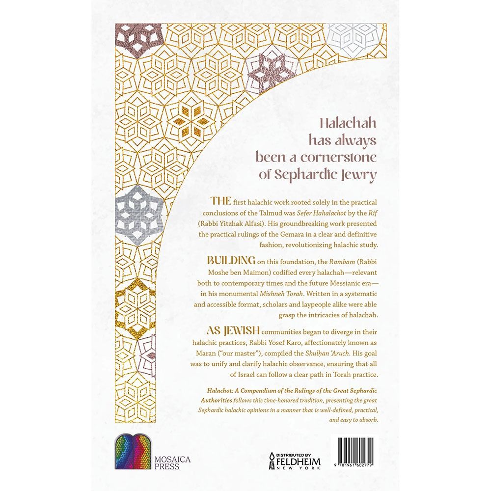 Halachot: A Compendium of the Rulings of the Great Sephardic Authorities follows this time-honored tradition, presenting the great Sephardic halachic opinions in a manner that is well-defined, practical, and easy to absorb.