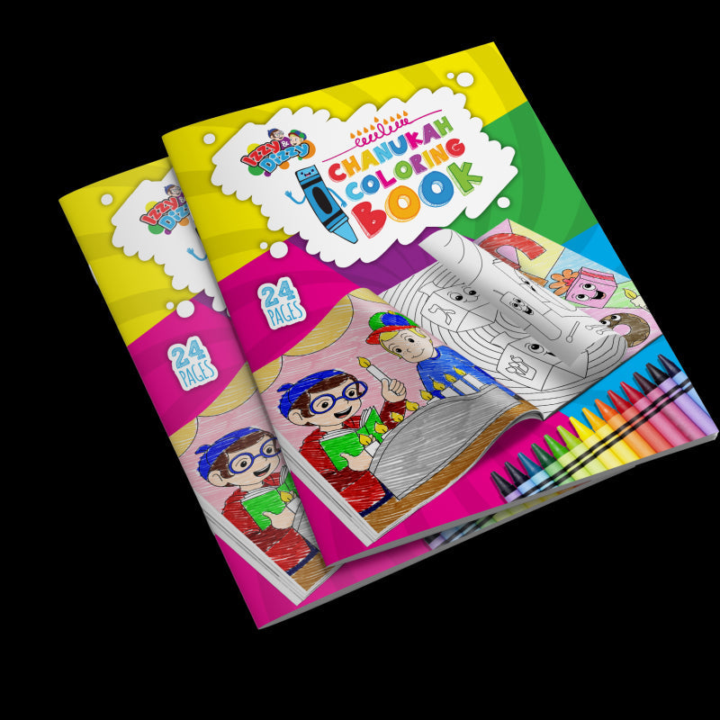 xDescription This Chanukah coloring book featuring Izzy & Dizzy characters, is for the books!. Its great activities that are geared for all ages that will keep them occupied even when the flames have burned out and doughnuts are finished. It is the absolute must when planning entertainment for your Chanukah party.