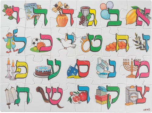 Learn the Hebrew alphabet in a fun and creative way!A colorful puzzle that introduces kids to the Hebrew letters with delightful illustrations for each one.Perfect for developing language skills, motor skills, andimagination. '-' ! . , .SkuART-UK80795Age3+Size11" x 15"Learn the Hebrew alphabet in a fun and creative way! A colorful puzzle that introduces kids to the Hebrew letters with delightful illustrations for each one. Perfect for developing language skills, motor skills, andimagination. '-' ! . , .Learn the Hebrew alphabet in a fun and creative way!A colorful puzzle that introduces kids to the Hebrew letters with delightful illustrations for each one.Perfect for developing language skills, motor skills, andimagination. '-' ! . , .SkuART-UK80795Age3+Size11" x 15"