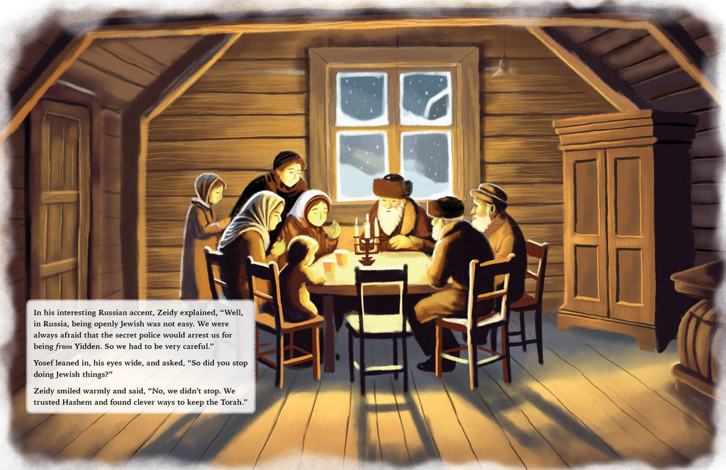 Join Yosef as he learns what life was like for Zeidy as a little boy in Russia, where it was dangerous to live openly as a Yid. Discover how Zeidy kept so many mitzvos by hiding them in plain sight!