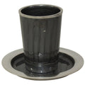 Kiddush Cup NickelEnamel Light Dark Grey WSaucer 3.5"H - #KC11012-DG