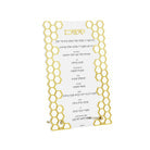 The Laser Cut Honeycomb Simanim Card v.2, crafted from high-quality lucite, features a stunning and sophisticated design perfect for your Rosh Hashanah table. Available in silver or gold, its raised 3D honeycomb pattern and title add depth and elegance, making it a striking and refined addition to your yom tov table decor.5.2" x 8.15"Standing legs includedThe Laser Cut Honeycomb Simanim Card v.2, crafted from high-quality lucite, features a stunning and sophisticated design perfect for your Rosh Hashanah table. Available in silver or gold, its raised 3D honeycomb pattern and title add depth and elegance, making it a striking and refined addition to your yom tov table deThe Laser Cut Honeycomb Simanim Card v.2, crafted from high-quality lucite, features a stunning and sophisticated design perfect for your Rosh Hashanah table. Available in silver or gold, its raised 3D honeycomb pattern and title add depth and elegance, making it a striking and refined addition to your yom tov table de