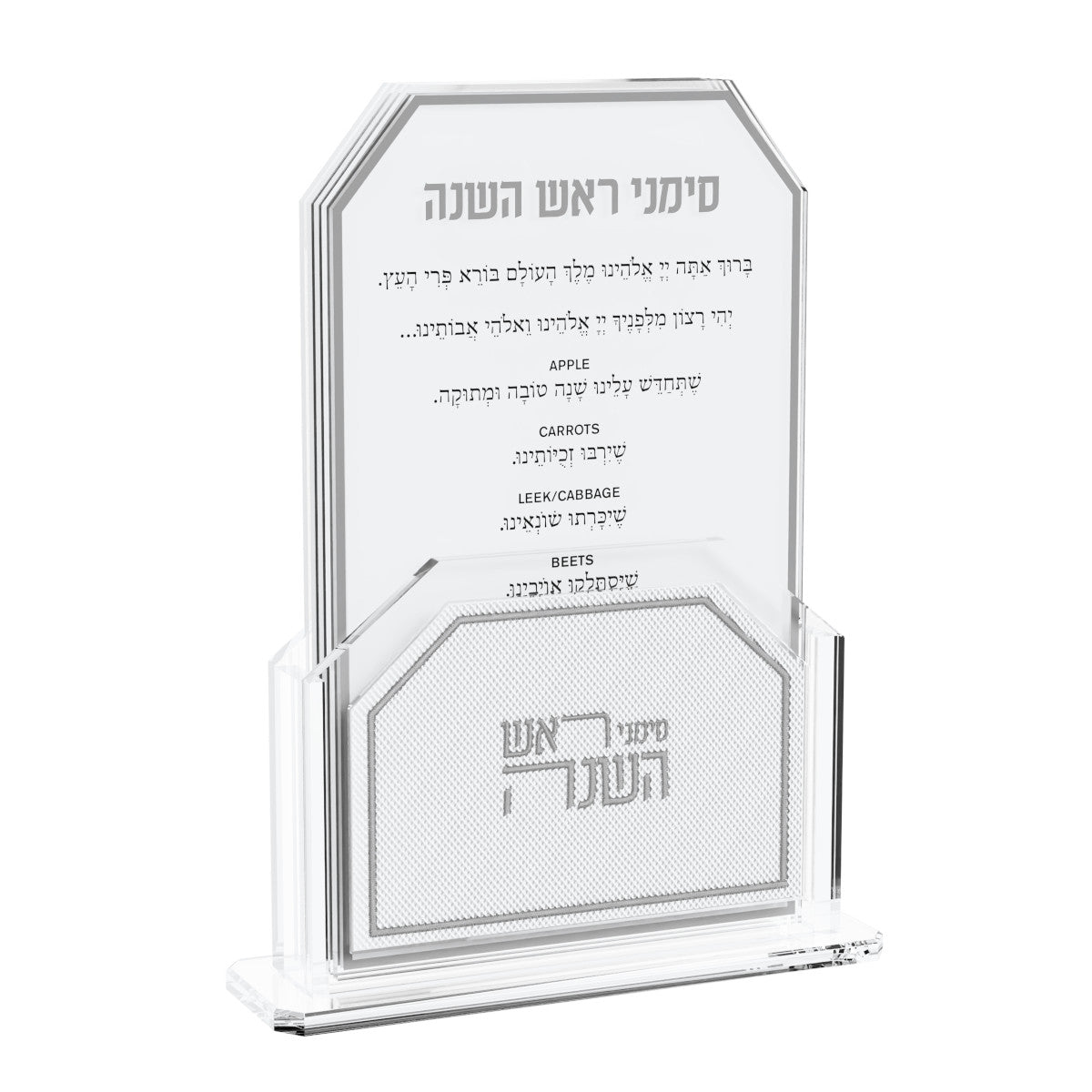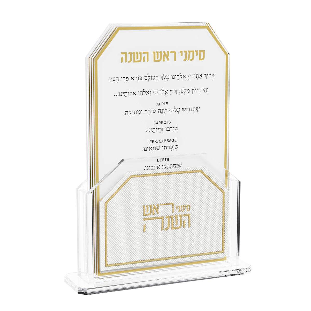 This luxurious Leatherite Simanim Packis the perfect addition to your Yom Tov table. Elegant and sophisticated, this beautiful simanim set is the ultimate Rosh Hashanah addition. Each simanim card is perfectly designed to make it clear to read. Complete with an embroidered leatherite holder, this set brings a new joy to the reading of the simanim.5.9" x 1.8" x 7.7"4 cards includedThis luxurious Leatherite Simanim Packis the perfect addition to your Yom Tov table. Elegant and sophisticated, this beautiful simanim set is the ultimate Rosh Hashanah addition. Each simanim card is perfectly designed to make it clear to read. Complete with an embroidered leatherite holder, this set brings a new joyThis luxurious Leatherite Simanim Packis the perfect addition to your Yom Tov table. Elegant and sophisticated, this beautiful simanim set is the ultimate Rosh Hashanah addition. Each simanim card is perfectly designed to make it clear to read. Complete with an embroidered leatherite holder, this set brings a new joy