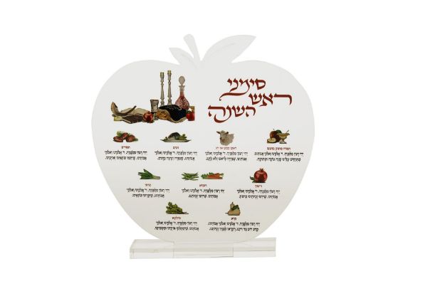 xLucite Rosh Hashana card in shape of an apple. Comes with a clear 1 12 inch wide stand.The card is 8.5" long and 8.5 " in height.Lucite Rosh Hashana card in shape of an apple. Comes with a clear 1 12 inch wide stand.The card is 8.5" long and 8.5 " in height.Lucite Rosh Hashana card in shape of an apple. Comes with a clear 1 12 inch wide stand.The card is 8.5" long and 8.5 " in height.