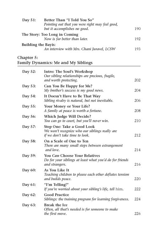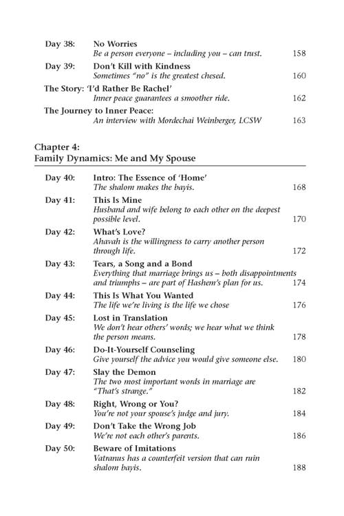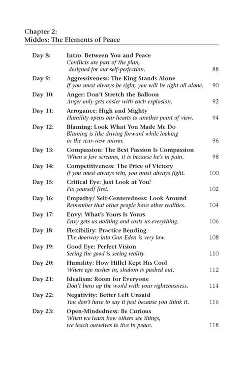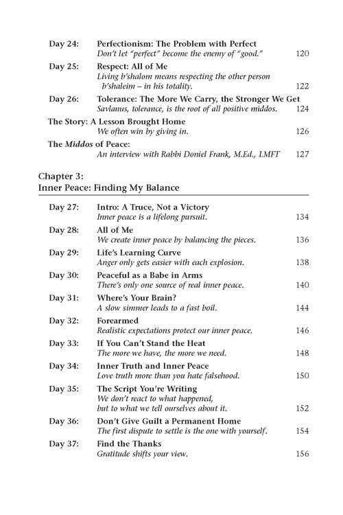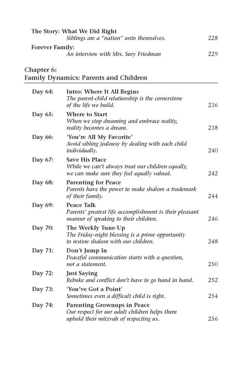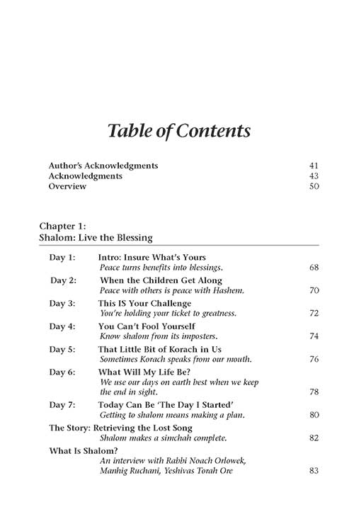 This volume is packed with practical tools and expert advice. Each lesson suggests a step that readers can take to infuse their lives with shalom. Each chapter includes an interview with a rabbi, mental health professional or educator who provides an expert's perspective. The final chapter is a collection of materials that provide invaluable tools for securing the blessing of shalom for a lifetime.
