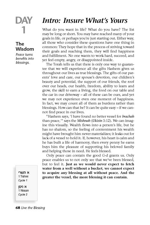 With one concise, content-packed lesson each day, this volume will transform the readers' perspectives and their lives, providing a realistic way to Live the Blessing that shalom brings.