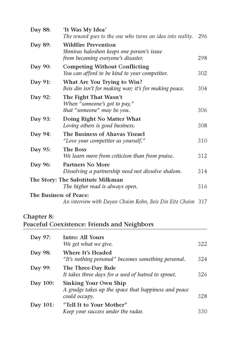 The Torah's wisdom overflows with insight and practical answers to this burning question. Live the Blessing brings the reader a daily dose of this wisdom, accompanied by a story that shows us how to incorporate the concept into our lives. Its chapters candidly confront the nitty-gritty of conflict and machlokes, including parent-child relationships, shalom bayis, divorce, business and community disputes. Its vital message While differences are inevitable, personal enmity is not.