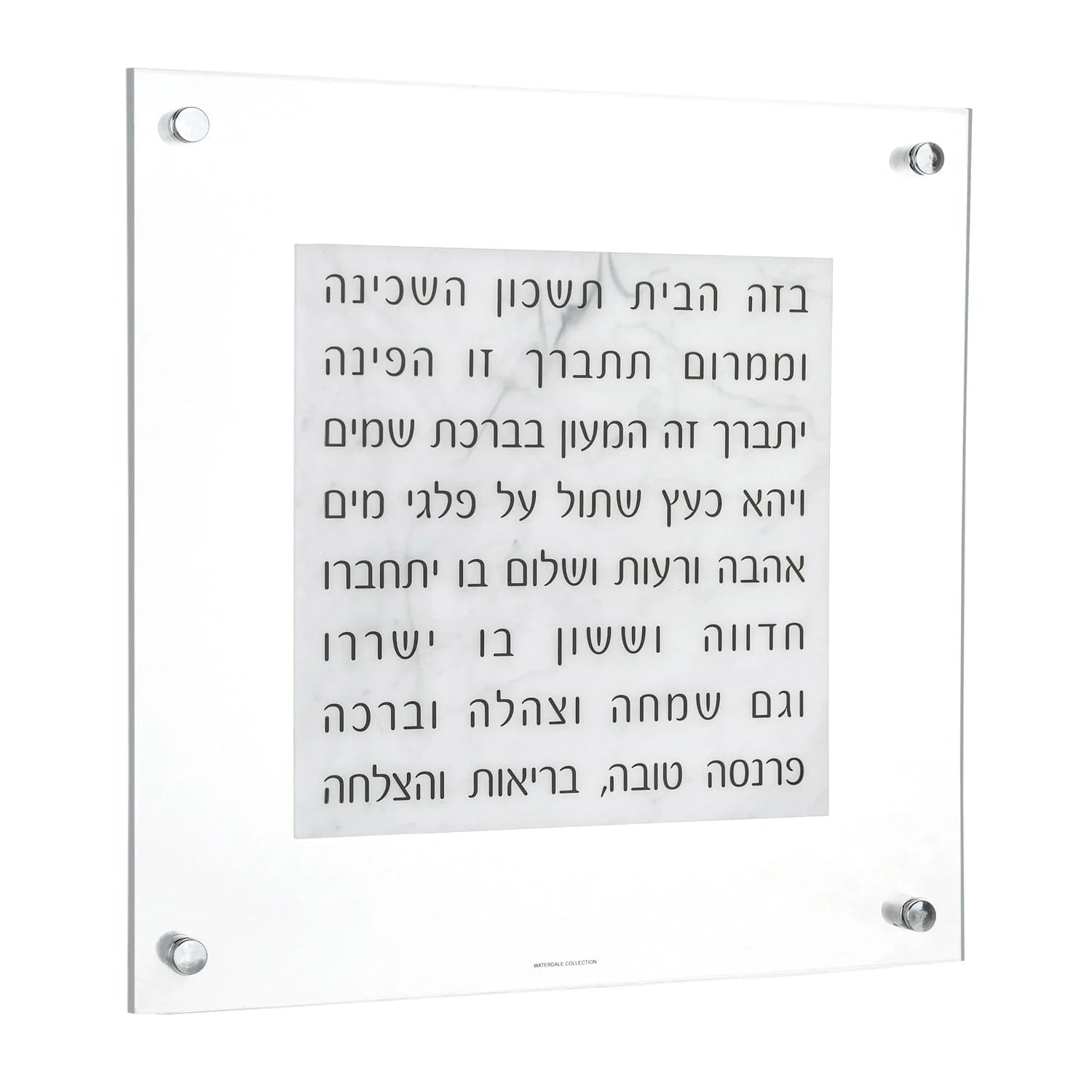 xElevate your space with the Marble Birchas Habayis—a modern twist on classic lucite wall art. Featuring a marble-inspired lucite layer over thick crystal-clear lucite, this piece combines style and readability in one sleek design. With its clean lines and timeless look, it flows beautifully in any décor, making it a perfect blend of elegance and tradition.