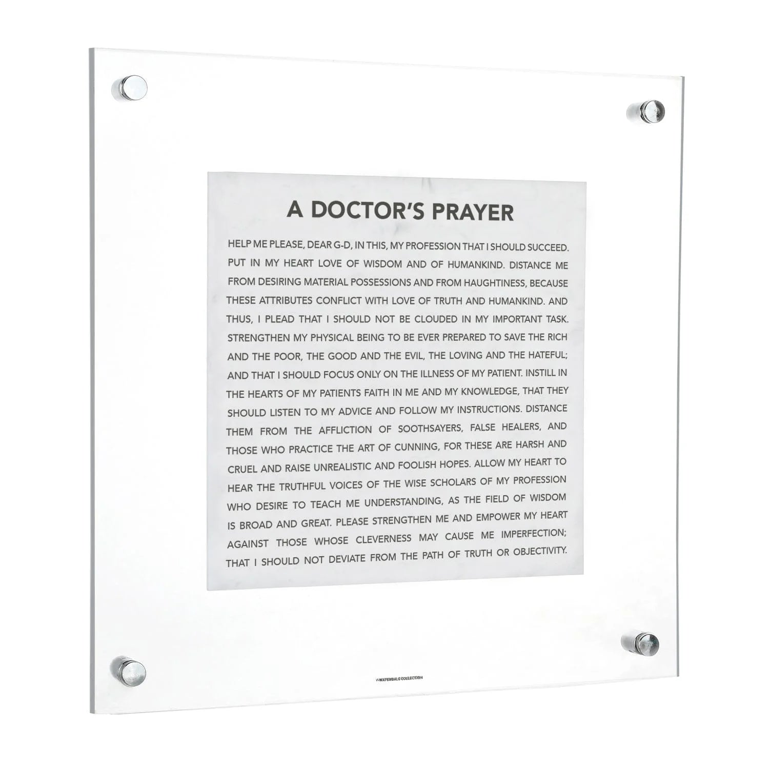 xModern and meaningful, the Marble Tefillas Harofeh/Doctor's Prayer is a fresh take on classic lucite wall art. Featuring a marble-inspired lucite layer over thick crystal-clear lucite, it offers easy readability with a sleek, sophisticated look. Designed to complement any style of décor, this is the perfect gift for any medical professional—beautiful, practical, and full of heartfelt bracha.