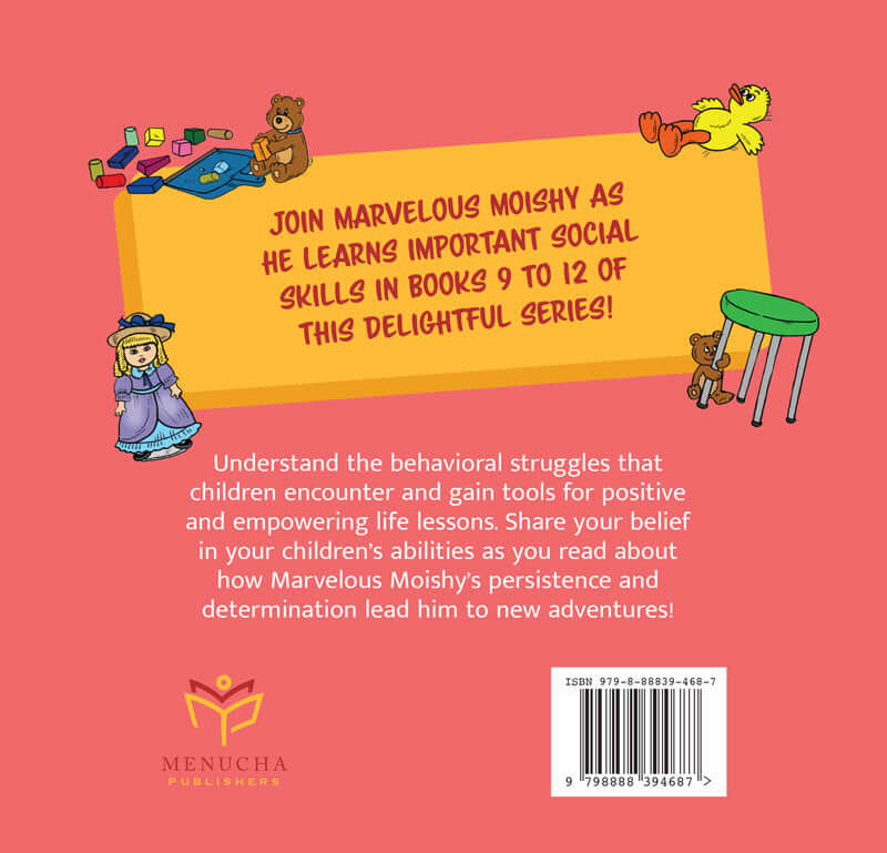 Join Marvelous Moishy as he learns important social skills in books 9 to 12 of this delightful series! Understand the behavioral struggles that children encounter and gain tools for positive and empowering life lessons.