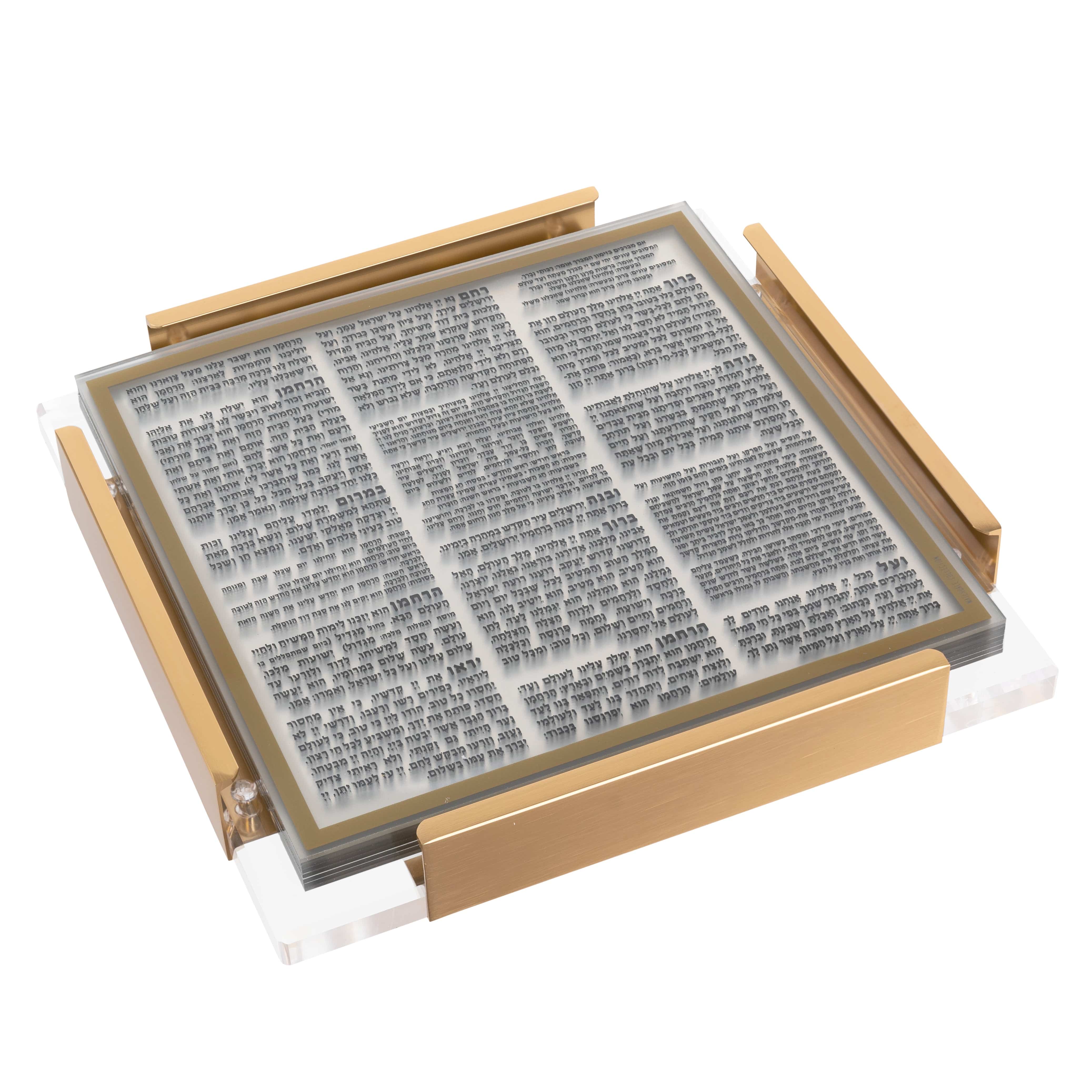 xLuxurious frosted Lucite Bencher Cards in a lay flat MetaLucite case. Luxury crystal clear lucite base accented with magnificent easy to carry metal handles. Easy to Read. Wipe Clean. Acrylic Birchat Hamazon Set is always a great Judaica Gift.Luxurious frosted Lucite Bencher Cards in a lay flat MetaLucite case. Luxury crystal clear lucite base accented with magnificent easy to carry metal handles. Easy to Read. Wipe Clean. Acrylic Birchat Hamazon Set is always a great Judaica Gift.Luxurious frosted Lucite Bencher Cards in a lay flat MetaLucite case. Luxury crystal clear lucite base accented with magnificent easy to carry metal handles. Easy to Read. Wipe Clean. Acrylic Birchat Hamazon Set is always a great Judaica Gift.