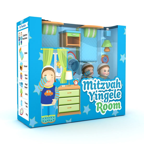 xDescription Jewish fun details add to the play value of our bedroom sets. Kinderlach will delight as they tuck the Mitzvah Kinder into bed, and awaken them with negel vasser in the morning.