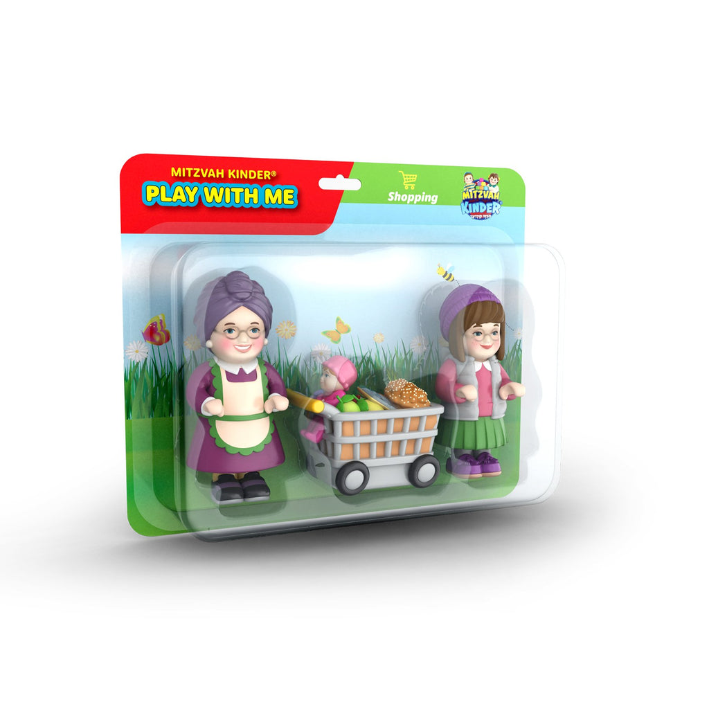 xDescription Go shopping with the Mitzvah Kinder.The Mitzvah Kinder toys portray a warm, loving family atmosphere that children can identify with and relate to. Kids will enjoy hours of endless Jewish imagination and fun while learning to help others, and show good character traits at all times!The Mitzvah Kinder Shopping set is a gift every child will cherish.