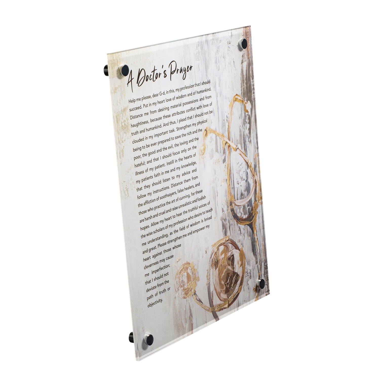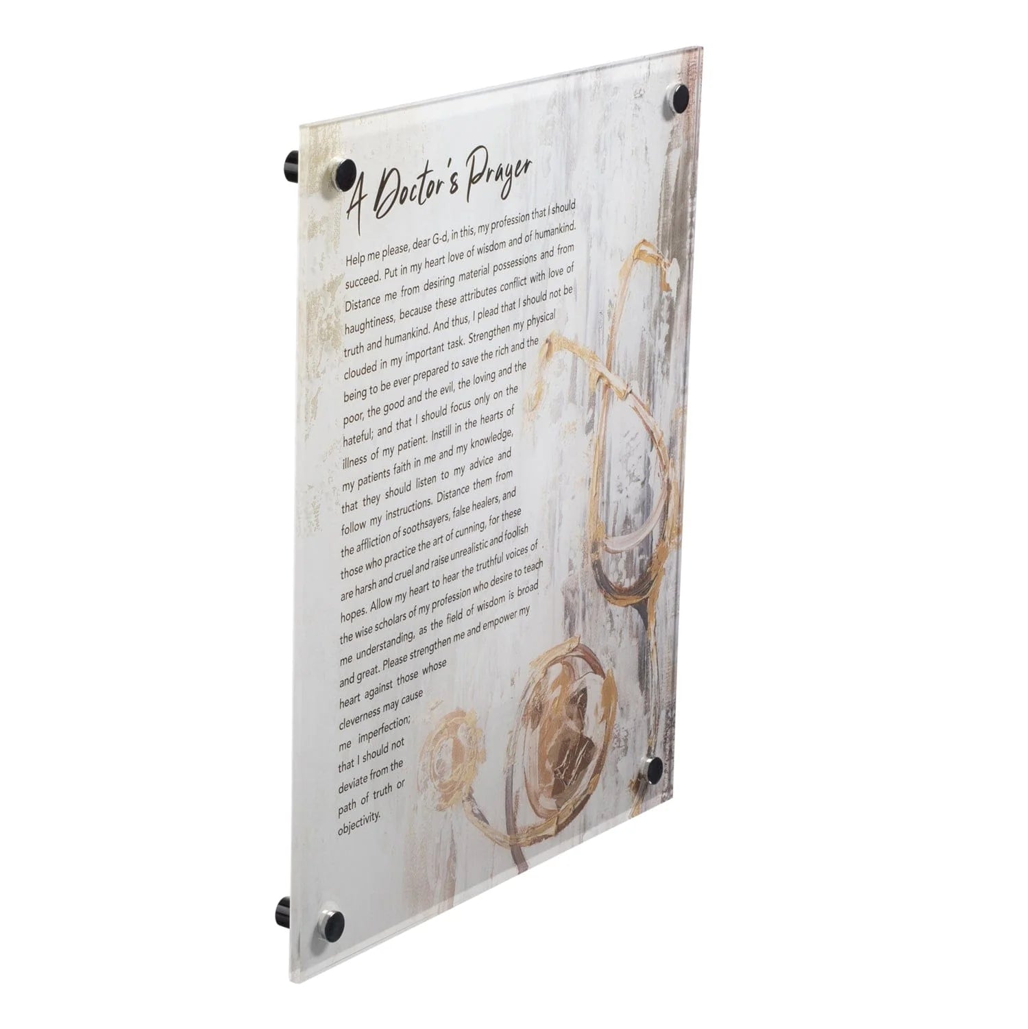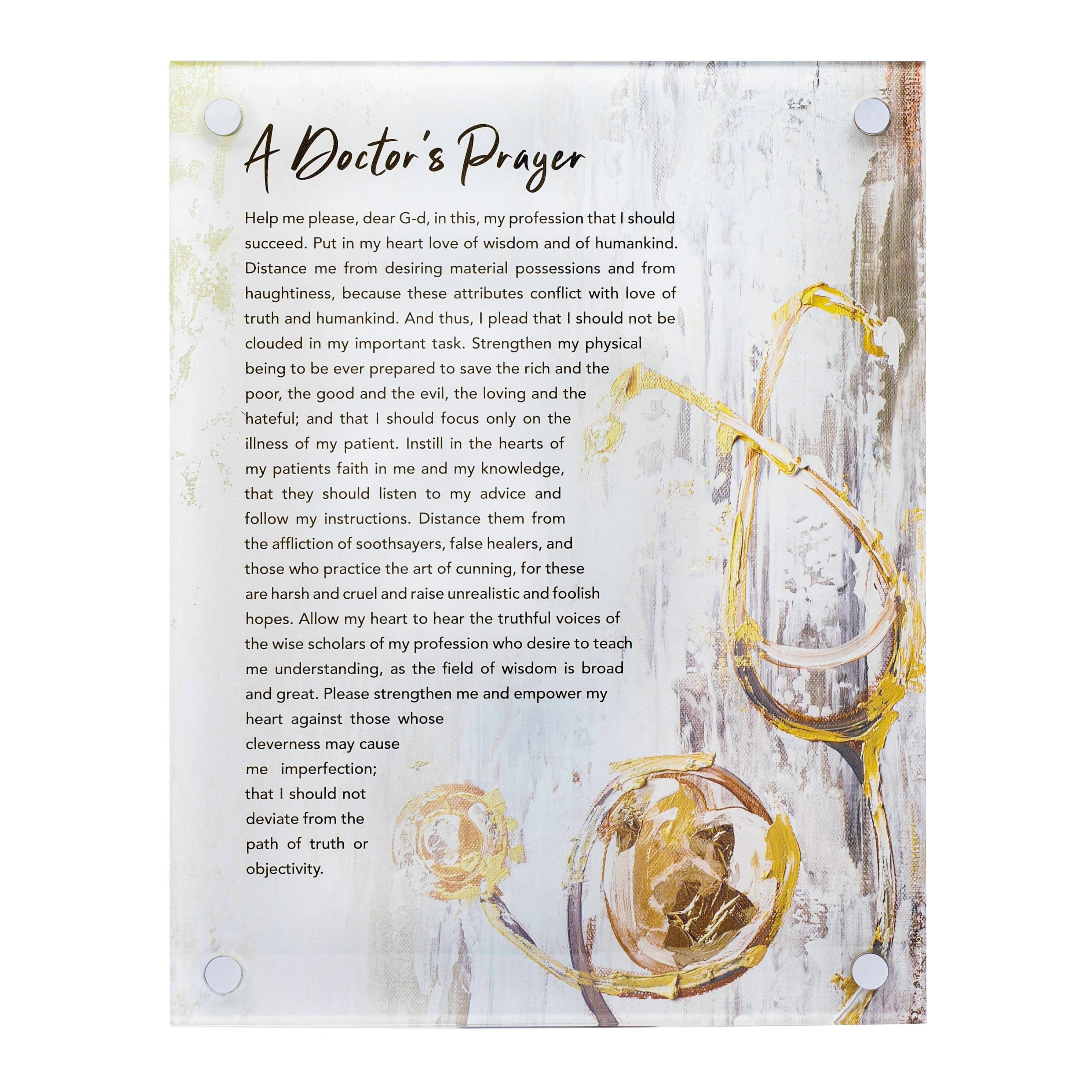 Elegant and inspiring, the Painted Tefillas Harofeh/Doctor's Prayer is a stunning piece printed on crystal-clear lucite with metallic gold accents for an almost original painted feel. Backed in white for easy readability on any wall, this peice blends beauty with meaning. A perfect and thoughtful gift for any doctor, it adds a refined touch to any medical office or space.