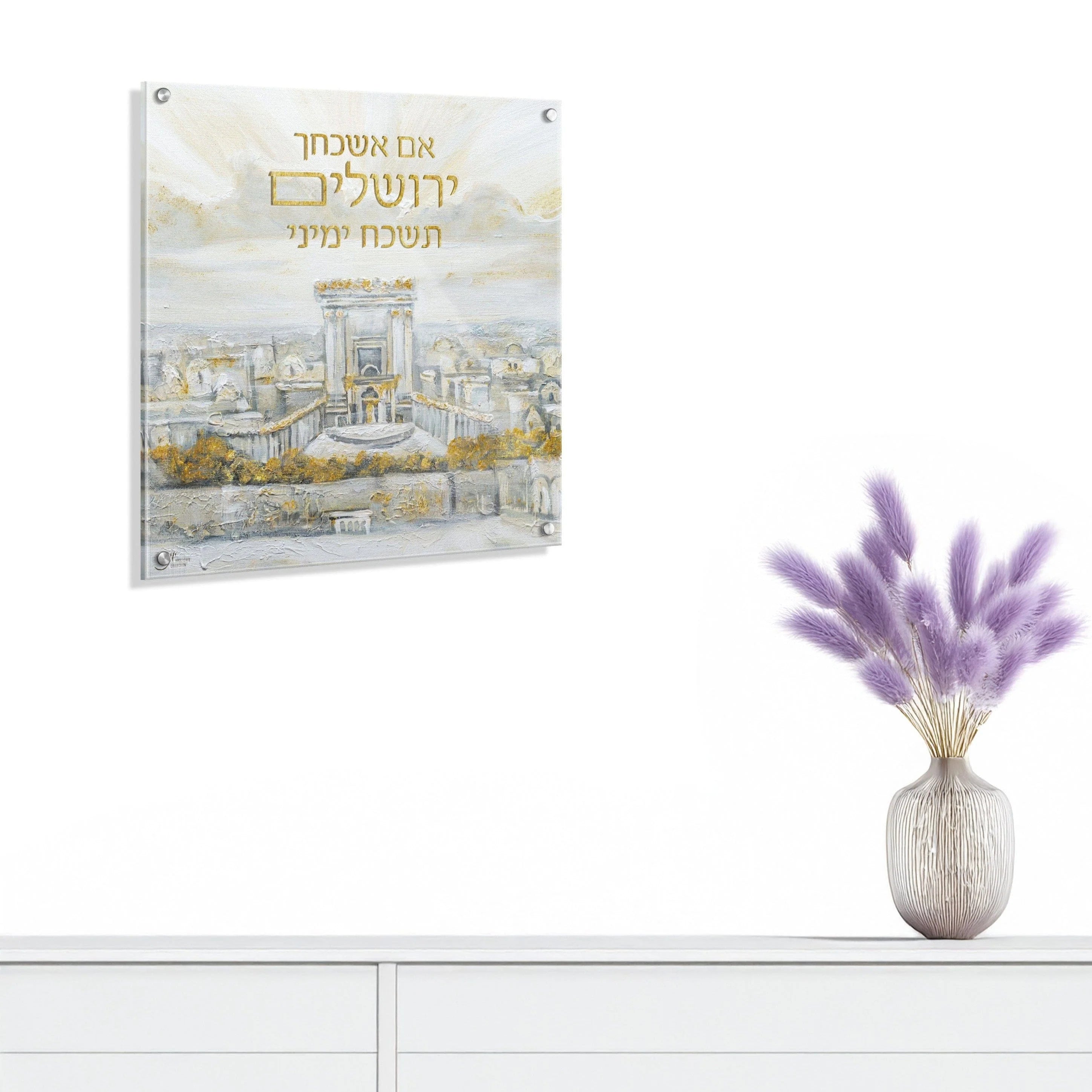 xPainted by our Waterdale exclusive artist Yonatan!The Painted Yonatan Im Eshkachech is a stunning expression of beauty and meaning, printed on crystal-clear lucite and accented with metallic gold for a near-original painted look. With its rich detail and refined finish, this piece adds inspiration and elegance to any room.Dimensions 14"x14"Chrome mounting hardware includedCLICK HERE to add colored screwsFloats 34" off the wallTo personalize CLICK HEREPainted by our Waterdale exclusive artist Yonatan! The Painted Yonatan Im Eshkachech is a stunning expression of beauty and meaning, printed on crystal-clear lucite and accented with metallic gold for a near-original painted look. With its rich detail and refined finish, this piece adds inspiration and elegance to anyPainted by our Waterdale exclusive artist Yonatan! The Painted Yonatan Im Eshkachech is a stunning expression of beauty and meaning, printed on crystal-clear lucite and accented with metallic gold for a near-original painted look. With its rich detail and refined finish, this piece adds inspiration and elegance to any