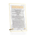 This beautiful and exquisite Pearlstone Tabletop Chanukah (חנוכה) Brachos piece brings modern elegance to your candle lighting. Designed with a crystal-clear lucite base and topped with a pearl marble acrylic overlay, it showcases the Hadlakas Ner Chanukah (הדלקת נר חנוכה) blessings in sleek black print with luxurious gold mirrored accents.