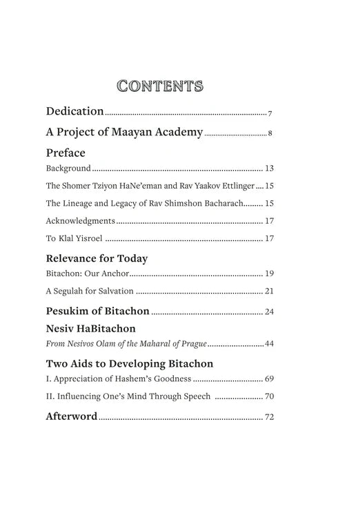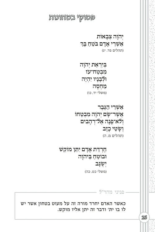 work have also been placed beneath the pesukim of Bitachon, allowing