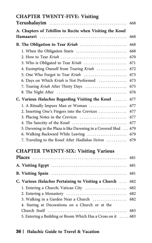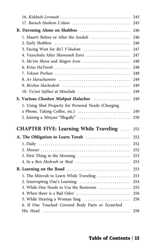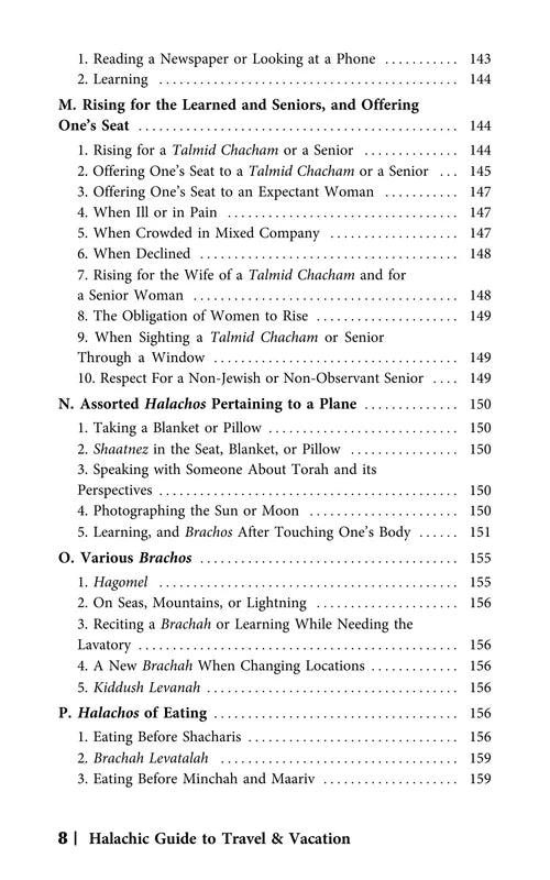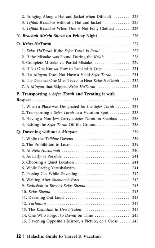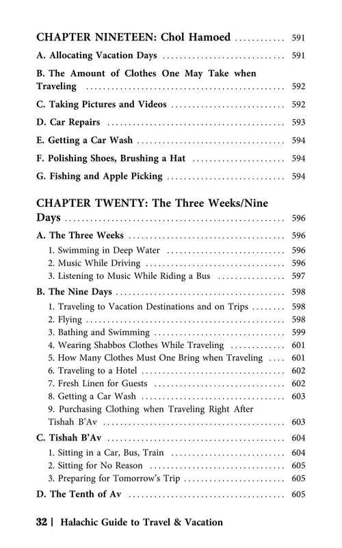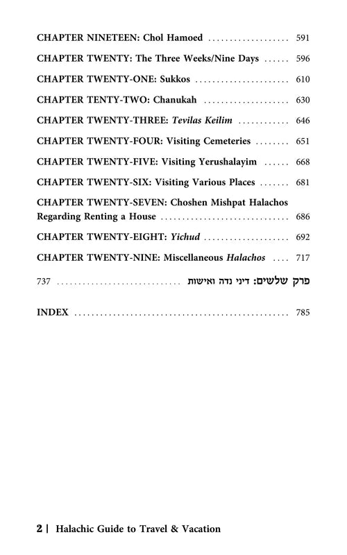 Rabbi Abramson has compiled an encyclopedic work covering an array of subjects which vary from the basic necessities of how and when to daven in-flight, to complexities of the dateline issue, and so much in between. Each chapter comprehensively covers another subject commonly pertaining to travelers, from all prevalent angles, and is carefully sourced and indexed. Rabbi Abramson's lucid style and thorough presentation have gained him wide acclaim in the English halachah genre. The Halachic Guide to Travel and Vacation will fast become indispensable for anyone who travels or vacations near or far