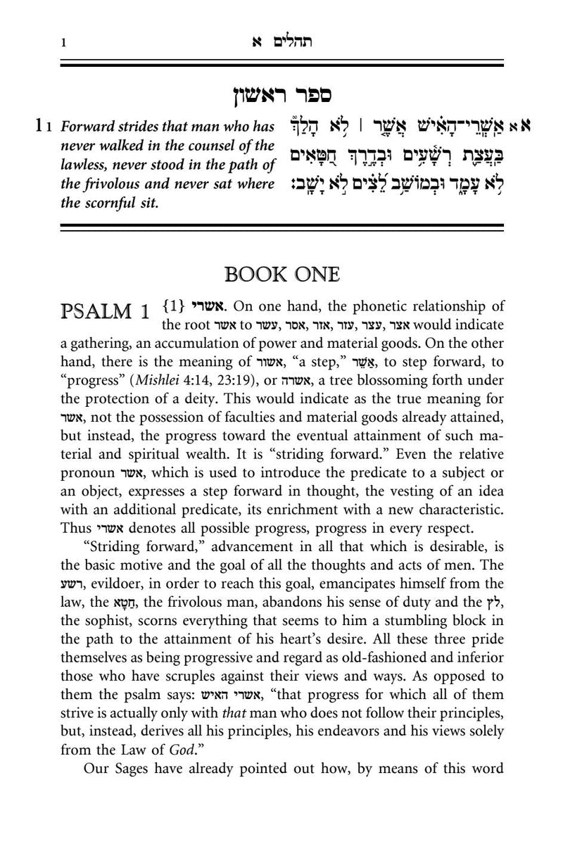 Rabbi Samson Raphael Hirsch, whose approach is based on his unique analysis of the meaning inherent to the sacred letters and words of the Hebrew language, creates a monumental commentary that reveals the relevance, power, beauty, and grandeur of Sefer Tehillim. Rabbi Hirsch is one of Judaism's greatest and original thinkers, and this modernized, thoroughly revised translation of his classic commentary offers readers a wealth of insight and understanding into the timeless teachings of Sefer Tehillim's.