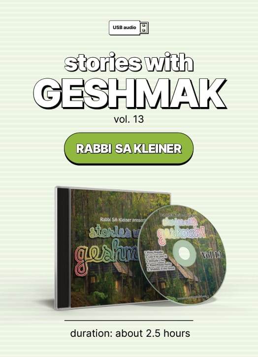 TracksPinny ProzdorLive It To Love It!Shmulik's FirePowerhouse PaintsShabbos InTheForestThe power of a story is that it makeworlds come alive within you. With apassionate story-teller that embodiesthe message of each story, RabbiKleiner excites every listener to hearmore, over & over again!Every Story focuses on having goodmiddos & geshmak inavodasHashem!Duration About 2.5 HoursSKU6197167FormatUSBArtistTorah 2 GoTracks Pinny Prozdor Live It To Love It! Shmulik's Fire Powerhouse Paints Shabbos InTheForest The power of a story is that it make worlds come alive within you. With a passionate story-teller that embodies the message of each story, Rabbi Kleiner excites every listener to hear more, over & over again! Every Story focuses on having good middos & geshmak inavodasHashem! Duration About 2.5 HoursTracksPinny ProzdorLive It To Love It!Shmulik's FirePowerhouse PaintsShabbos InTheForestThe power of a story is that it makeworlds come alive within you. With apassionate story-teller that embodiesthe message of each story, RabbiKleiner excites every listener to hearmore, over & over again!Every Story focuses on having goodmiddos & geshmak inavodasHashem!Duration About 2.5 HoursSKU6197167FormatUSBArtistTorah 2 Go
