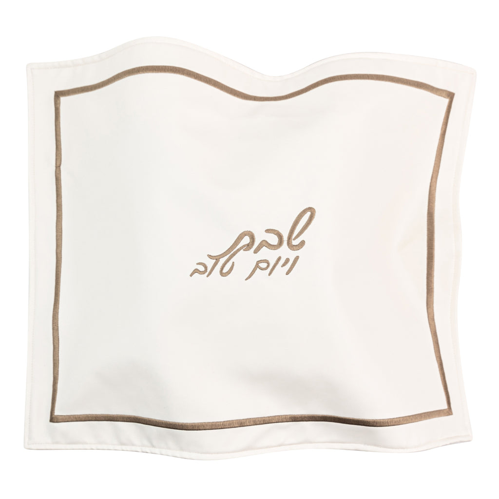 xDescription This magnificent Leather Challah Cover will make a striking addition to your Shabbos table. Unique design looks gorgeous when laid on top of Challahs. Features white leather with a classic line border. Premium quality & feel! Both practical and beautiful, this Challah cover would make a great gift.Dimensions 17.5" x 22"