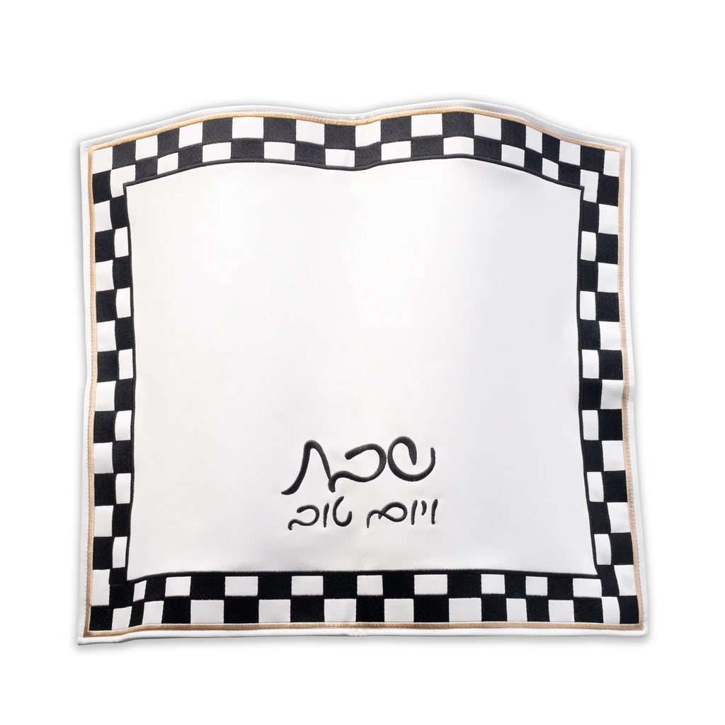 This magnificent Leather Challah Cover will make a striking addition to yourShabbos table. Unique design looks gorgeous when laid on top of Challahs.Features sophisticated black and white border with gold edging. Premiumquality & feel! Both practical and beautiful, this Challah cover would make agreat gift.Dimensions 17.5" x 22"Faux leather with embroidered wordsWipe downBacked with a layer of cottonSkuHM-PU-CC-OCMaterialFaux LeatherSize17.5" x 22"This magnificent Leather Challah Cover will make a striking addition to your Shabbos table. Unique design looks gorgeous when laid on top of Challahs. Features sophisticated black and white border with gold edging. Premium quality & feel! Both practical and beautiful, this Challah cover would make a great gift. Dimensions 17.5" x 22" Faux leather with embroidered words Wipe down Backed with a layer of cottonThis magnificent Leather Challah Cover will make a striking addition to yourShabbos table. Unique design looks gorgeous when laid on top of Challahs.Features sophisticated black and white border with gold edging. Premiumquality & feel! Both practical and beautiful, this Challah cover would make agreat gift.Dimensions 17.5" x 22"Faux leather with embroidered wordsWipe downBacked with a layer of cottonSkuHM-PU-CC-OCMaterialFaux LeatherSize17.5" x 22"