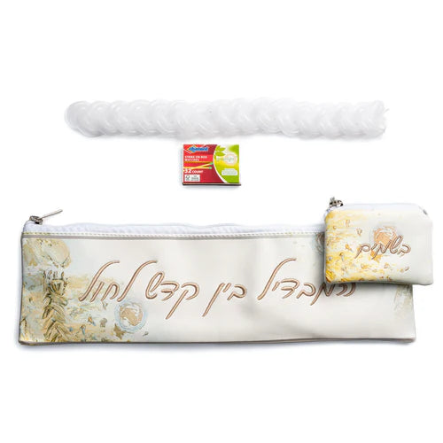 pouch with Havdalah textFaux leather with embroidered wordsWipe down and machine washableLined with a layer of cotton