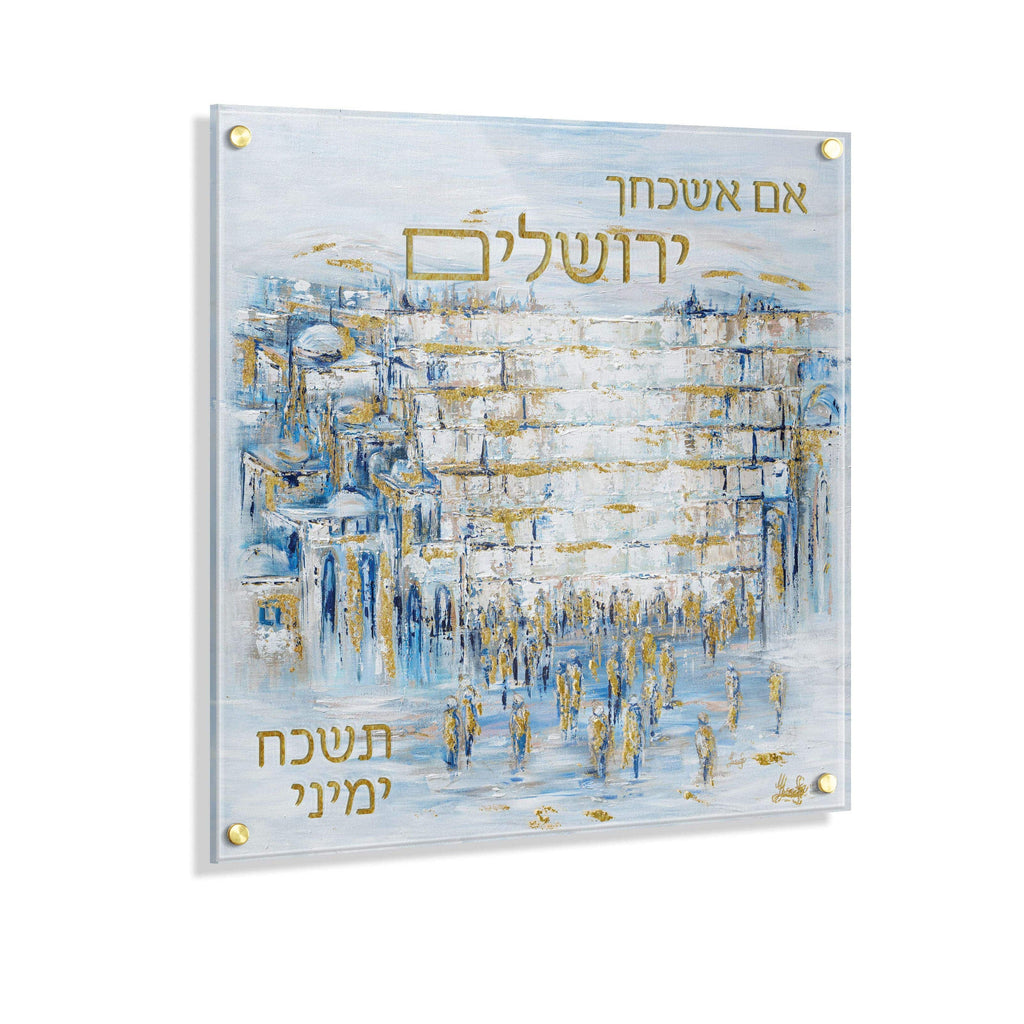 Painted by our Waterdale exclusive artist Yosefa!This beautiful exquisite Painted Im Eshkachech is printed on crystal clearlucite with metallic gold addition for an almost fully original feel.Coordinate this masterpiece with others in the same collection.Dimensions 14" x 14"Gold mounting hardware includedFloats 34" off the wallSkuHM-PY-IE-KOBarcode693031820169MaterialLuciteSize14" x 14"Painted by our Waterdale exclusive artist Yosefa! This beautiful exquisite Painted Im Eshkachech is printed on crystal clear lucite with metallic gold addition for an almost fully original feel. Coordinate this masterpiece with others in the same collection. Dimensions 14" x 14" Gold mounting hardware included Floats 34" off the wallPainted by our Waterdale exclusive artist Yosefa!This beautiful exquisite Painted Im Eshkachech is printed on crystal clearlucite with metallic gold addition for an almost fully original feel.Coordinate this masterpiece with others in the same collection.Dimensions 14" x 14"Gold mounting hardware includedFloats 34" off the wallSkuHM-PY-IE-KOBarcode693031820169MaterialLuciteSize14" x 14"