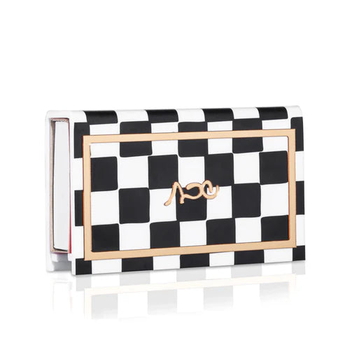 Features white lucite, die cut mirrored words, and a slot to strike the matches.