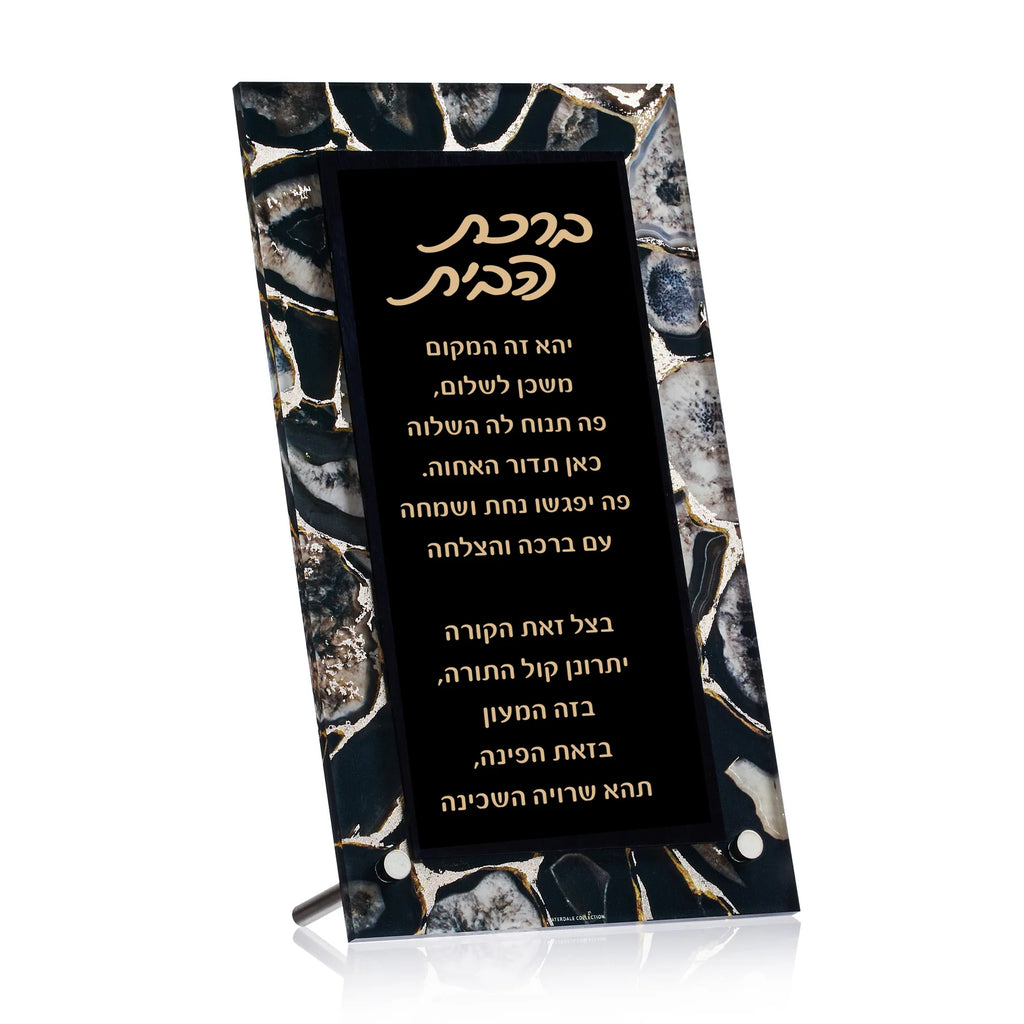 This beautiful exquisite Agate Tabletop Birchas Habayis features a naturalstone print on thick lucite, metallic embellishments, and another layer of luciteon top with an easy to read print. Freestanding, so sleek, and the perfect andpractical addition to your home! Coordinate with the agate collection.Dimensions 5"x9"Includes standing pegsSkuHM-BH-TT-AG-3Barcode745202257325MaterialLuciteSize5" x 9"This beautiful exquisite Agate Tabletop Birchas Habayis features a natural stone print on thick lucite, metallic embellishments, and another layer of lucite on top with an easy to read print. Freestanding, so sleek, and the perfect and practical addition to your home! Coordinate with the agate collection. Dimensions 5"x9" Includes standing pegsThis beautiful exquisite Agate Tabletop Birchas Habayis features a naturalstone print on thick lucite, metallic embellishments, and another layer of luciteon top with an easy to read print. Freestanding, so sleek, and the perfect andpractical addition to your home! Coordinate with the agate collection.Dimensions 5"x9"Includes standing pegsSkuHM-BH-TT-AG-3Barcode745202257325MaterialLuciteSize5" x 9"