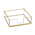 Boast a captivating look with this stunning Wave Napkin Holder. Crafted with lavish gold accents, it elevates any décor with a touch of sophistication. Perfect for for your table, its eye-catching design lends a luxurious note to any occasion.